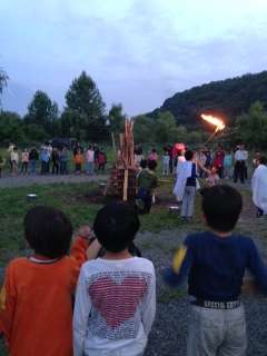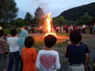 キャンプファイヤーでは、ようかい体操やエビカニクスを踊ったり、大きな声で歌ったり、楽しい時間を過ごすことができました。花火を見て、これから寝るところです。きっといい夢を見られると思います!