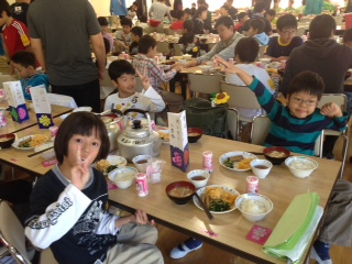 昨晩は興奮して22時頃まで寝付けませんでしたが、3人とも元気に2日目の朝を迎えました。これから朝食です。富士山がとても綺麗に大きく見えます!