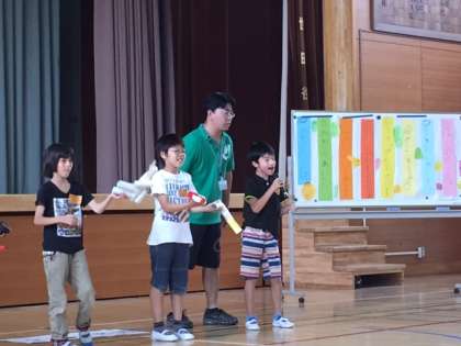 今日は、烏山小学校でお楽しみ交流会がありました。名刺交換やゲーム、ダンスなどをしました。