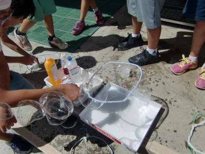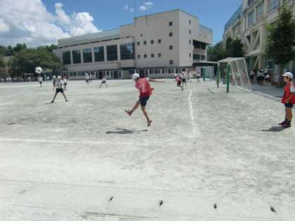 球技クラブはキックベース、科学クラブはシャボン玉作りの活動をしていました。