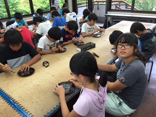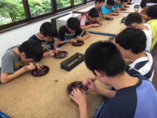 美味しいお弁当が食べ終わって、ただいま日光彫りにチャレンジ中です。