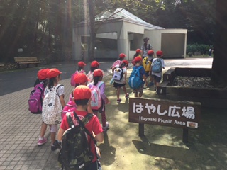 動物の足跡をたどりながら、はやし広場まで登って来ました。注意事項を聞いてから班行動に出発します!どんな動物に出会えるでしょうか?