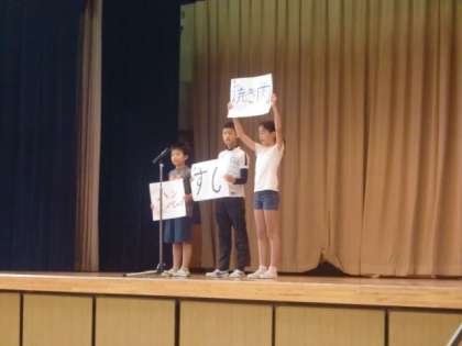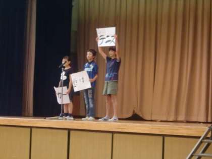 集会委員の子供たちが先生たちからアンケートを取り、クイズにしました。