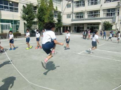 全学年、長縄に挑戦しています。