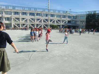 低学年は体力づくり週間でも取り組んでいる、長縄にチャレンジしていました。