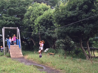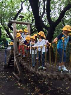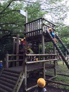 大蔵運動公園に到着し、みんな元気にアスレチックを楽しんでいます!