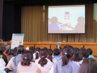生活科の時間、1年生は今まで育ててきたあさがおのつるを使い、
