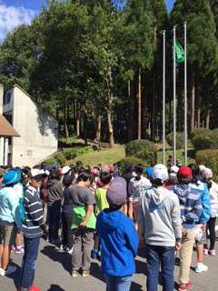 お弁当タイムが終わり、開室式を行いました。リンゴ、コスモス、風の音、川のせせらぎ…。3日間、この自然を堪能して帰ります!