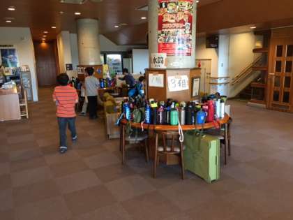 なかのビレジ周辺の散策が終わり、水筒を洗って並べ、これから飯盒炊爨の準備です!