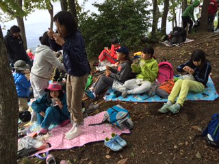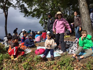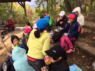 お弁当を食べています。ただ、風が強く、あまりの寒さに皆、震えながら食べています。早くお風呂に入りたいです!!
