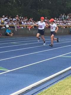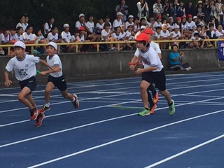 男子のリレーが終わりました。バトンが綺麗に渡りました!