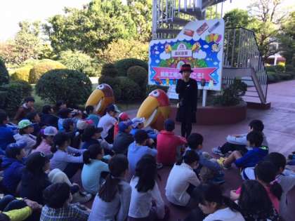 森永製菓に到着しました。これから工場の中に入り、説明を聞いてから見学します!