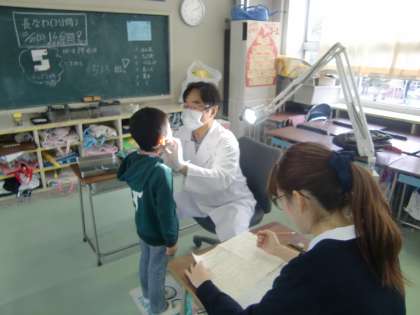 4月から明正小の1年生になる子供たちの健康診断です。