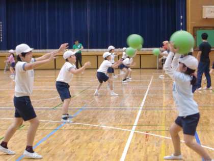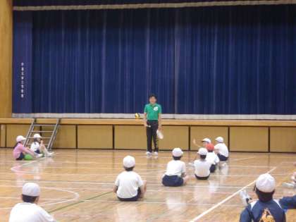 体育館では4年生がキャッチバレーボールの授業を行っていました。