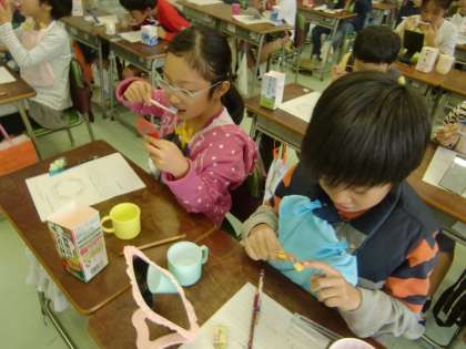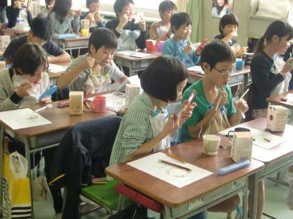 養護の先生と歯垢の染め出しを行った後に、歯科衛生士さんから歯のみがき方のポイントを教わりました。