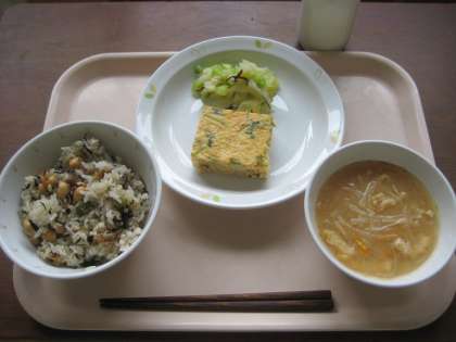 きゃべつの塩昆布かけ 大根のみそ汁 牛乳