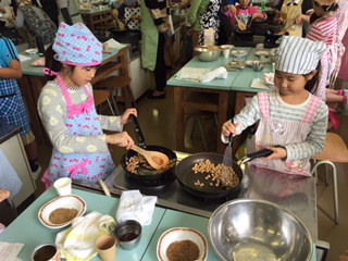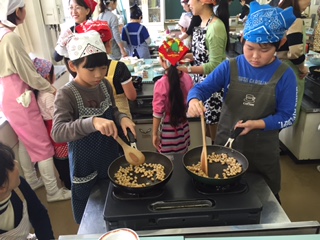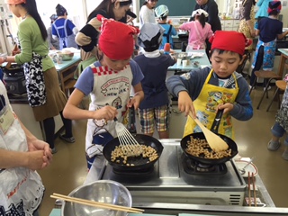 今日は、学校運営委員会主催の親子クッキング教室がありました。足達栄養士の指導のもと、給食の人気メニュー「大豆とじゃこの甘辛味」を作りました。自分で作った分、いつもの給食以上に美味しかったようです!