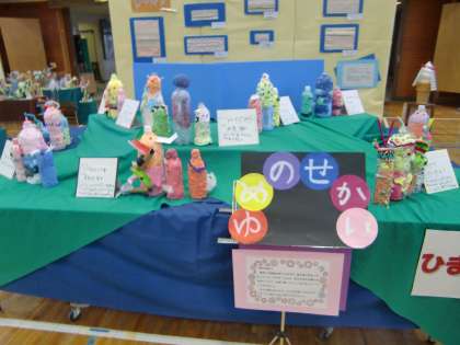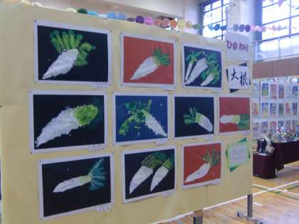 ひまわり学級の作品は、【大根の絵】【ししゅう】【夢の世界】の3作品です。