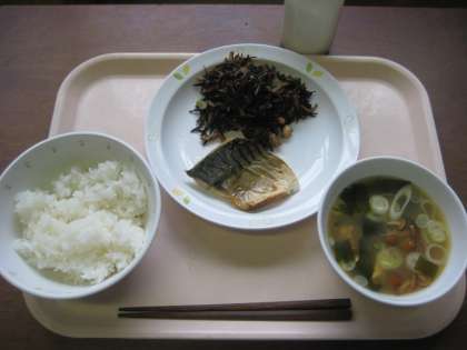 ごはん さばの文化干し ひじき煮 なめこのみそ汁 牛乳