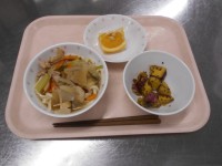 ごはん さけのステーキソース 粉ふきいも にらたまスープ 牛乳