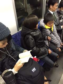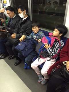 楽しかった体験が終わり、豊洲駅から電車に乗り込みました。これから学校に向けて帰ります!