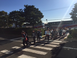 中央防波堤埋立処分場に到着しました。バスの号車ごとに見学してまわります!