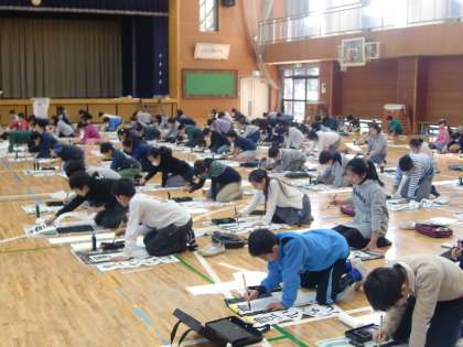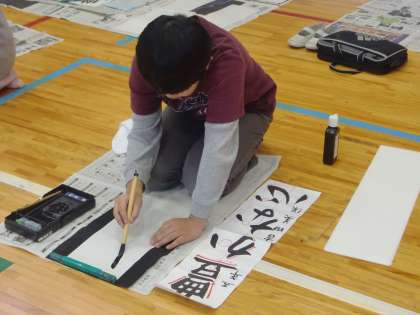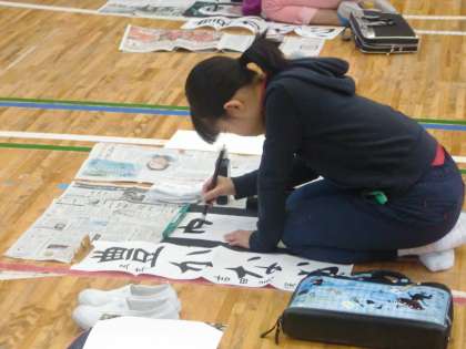 3,4時間目、5年生は体育館で書き初めを行いました。心を落ち着かせ、一筆一筆に思いを込めて丁寧に書くことができました。