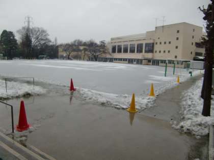 夜中から降り始めた雪ですが、校庭にもたくさん積もりました。お昼前には写真のような状態となりました。