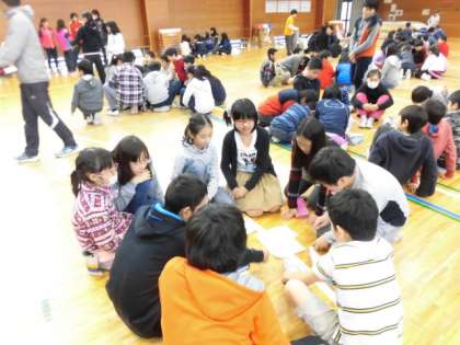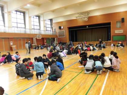 6時間目、体育館ではたてわりリーダー会議がありました。2月のたてわり班活動に向けて、6年生から5年生にリーダーの引きつぎが行われました。