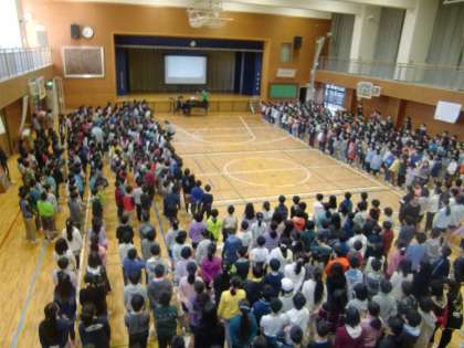 今朝は体育館で1月の音楽朝会がありました。「クラスの星座」という曲をしっとりと歌いました。