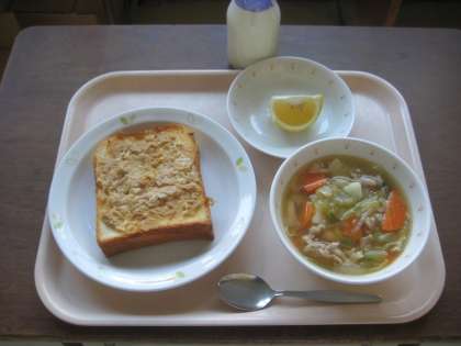 ツナトースト 白いんげん豆の田舎風スープ はるか 牛乳