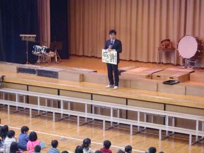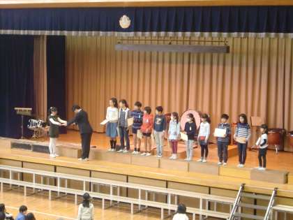 せたがやの子、ピアノ、ラグビーで頑張った子どもたちの表彰のあと、校長先生からは「感謝」についての話がありました。