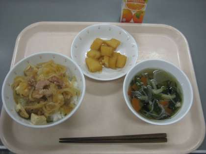 豚丼 じゃがいもの甘辛煮 こづゆ 牛乳