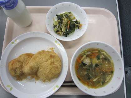 揚げパン 肉団子入り春雨スープ わかめサラダ 牛乳