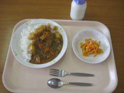 カレーライス 福神漬け にんじんサラダ 牛乳