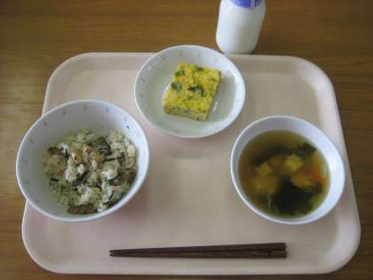 豆入りひじきごはん 千草焼き すまし汁 牛乳