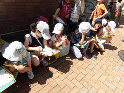 1,2時間目、3年生は町たんけんに出かけました。地域の様子を見つつ、情報をまとめていきました。坂のある場所や家が多くある場所など、子どもたちから見た発見が色々とあったようです。