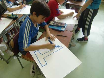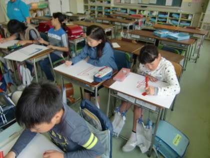 6時間目、運動会に向けた児童の係活動がありました。プラカードの練習をしている係やプログラムを書いている係もありました。写真は短距離走で走順を示す係の活動です。一つ一つ手作りで準備を進めています。
