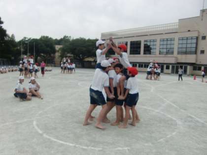 4時間目、5・6年生合同で騎馬戦の練習をしました。練習ではありましたが、すでに熱い戦いが行われていました。