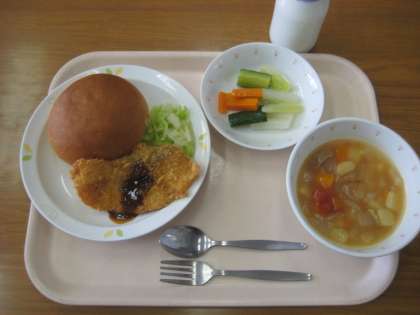 セルフフィッシュサンド ピクルス ミネストローネ 牛乳