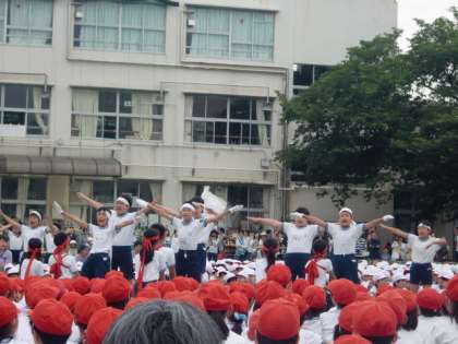 応援団によるエール交換です。団長が大きな声をだし頑張っています。