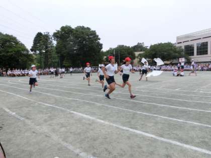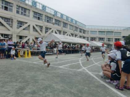 5年生による100m走です。ゴールまであきらめず走りぬきます。