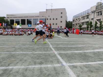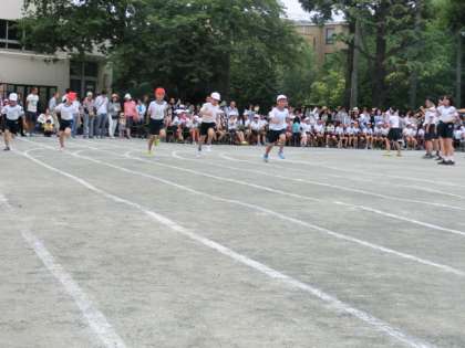 3年生の80m走です。最後まであきらめずに走りぬきます。
