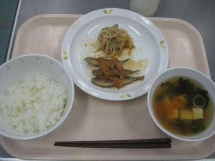 今日は「かみかみメニュー」として豆あじの南蛮あげを作りました。