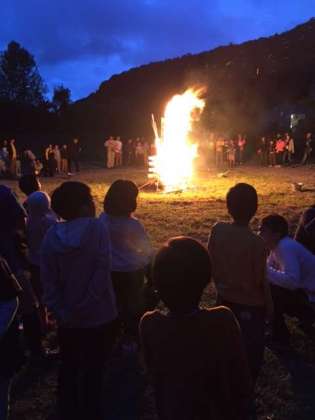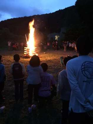 日が暮れて、いよいよキャンプファイヤーが始まりました。歌って、踊って、みんなで楽しみます!