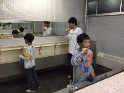 花火も終わり、いよいよ寝る支度です。歯ミガキをして、トイレを済ませ、パジャマに着替えて布団に入ります。いい夢が見られますように!
