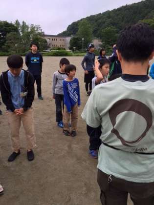 2日目の朝、天気は曇りですが、子どもたちは全員元気です。朝会が終わり、これから朝ごはんを食べて、出かける準備をします!