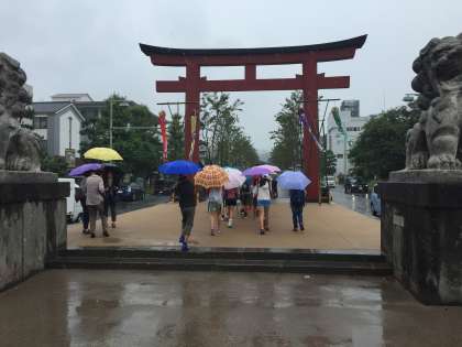 鶴岡八幡宮に到着しました。雨です。これから雨が止むようにお願いしてみます!