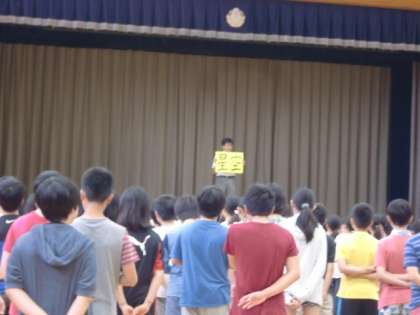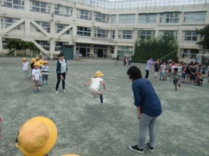 今朝は校庭と体育館でそれぞれ朝会がありました。体育館では校長先生から、5年生の川場移動教室と七夕に関連して「星空」の話がありました。校庭では1〜3年生が長縄に挑戦していました。