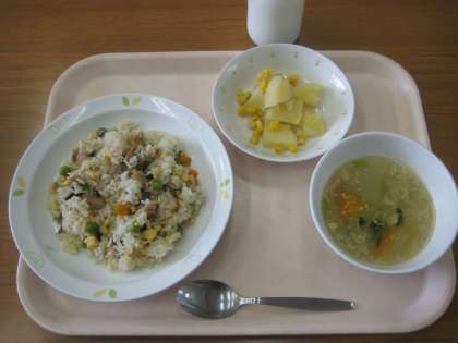 チャーハン コーンポテト 冬瓜スープ 牛乳